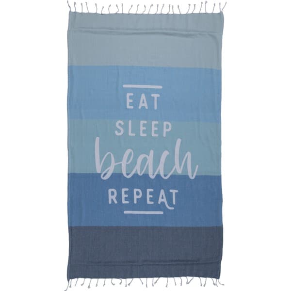 Luxe katoenen handdoek met badstof met daarop de tekst “Eat Sleep Beach Repeat”