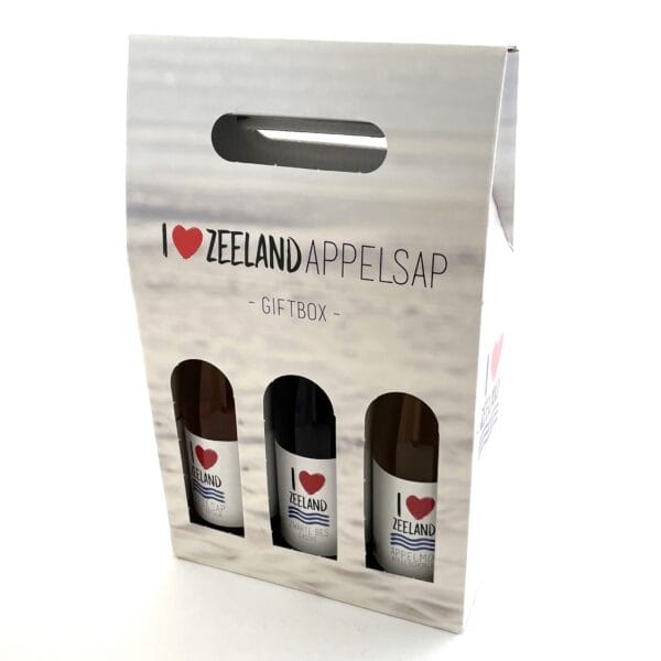 3 flesjes sap van I love Zeeland , verpakt in een mooie geschenkdoos